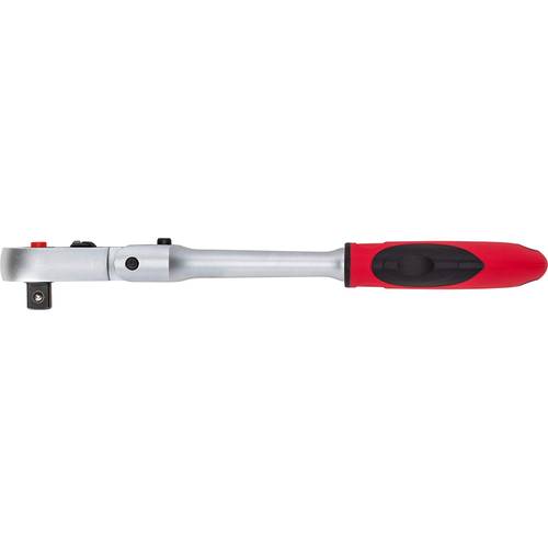 Die im Allgemeinen großen Umschaltknarren mit 1/2-Zoll-Verbindung benötigen viel Platz zum Schrauben. Mit einem Gelenk können Sie den langen Arm dagegen in beengten Situationen hochklappen und ihn so an Hindernissen vorbeidrehen. Sie können sogar Nuss und Ratsche in eine Linie bringen und wie mit einem Schraubendreher arbeiten. Kraft können Sie so jedoch fast gar nicht auf die Schraube übertragen.