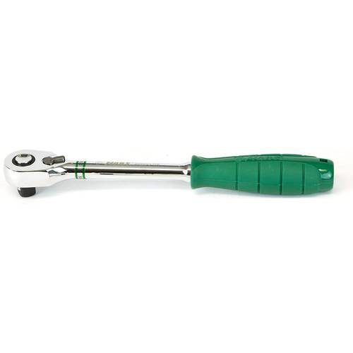 In verschiedenen Tests der 1/2-Zoll-Ratschen darf der Blick auf den Griff nicht fehlen. Zum Beispiel beim Reifenwechsel wird spätestens beim dritten Rad ein unbequemer Griff schnell zu einem echten Nachteil. Eine gummierte Fläche, am besten aus zwei Komponenten bestehend und mit Mulden für die Finger lässt hingegen ein sicheres und auch kräfteschonendes Greifen und Arbeiten zu. Kaufen Sie die 1/2-Zoll-Ratsche allerdings für die Arbeit in der Werkstatt, kann sich ein Modell komplett aus Stahl ebenfalls lohnen. Durch den häufigen Kontakt mit Schmier- und Lösungsmitteln nimmt ein gummierter Griff schnell Schaden, während ein gut geformter Stahlarm sich mit Handschuhen vergleichsweise gut fassen lässt und gleichzeitig sehr langlebig ist.