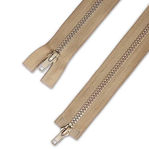 Die Längen von 2-Wege-Reißverschlüssen reichen von etwa 50 cm bis über 100 cm. Ein 2-Wege Reißverschluss mit 70 cm Länge ist häufig passend für eine Herren-Winterjacke mit einem 2-Wege-Reißverschluss. Ein 2-Wege-Reißverschluss mit 90 cm Länge oder mehr eignet sich für Zelte oder Schlafsäcke.