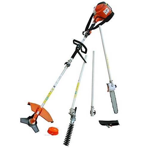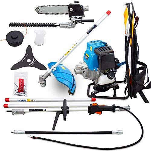 Das Set birgt neben der Fadenspulenkopf-4-Takt-Motorsense auch eine Heckenschere, ein Messerblatt, Trimmer und Kettensäge, weshalb sich eine 4-Takt-Motorsense in 5-in-1-Ausführung vor allem dann anbietet, wenn Sie Rundum-Einsätze in Ihrem Garten planen und Platz in der Garage sparen möchten.