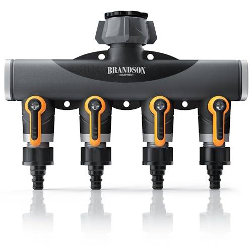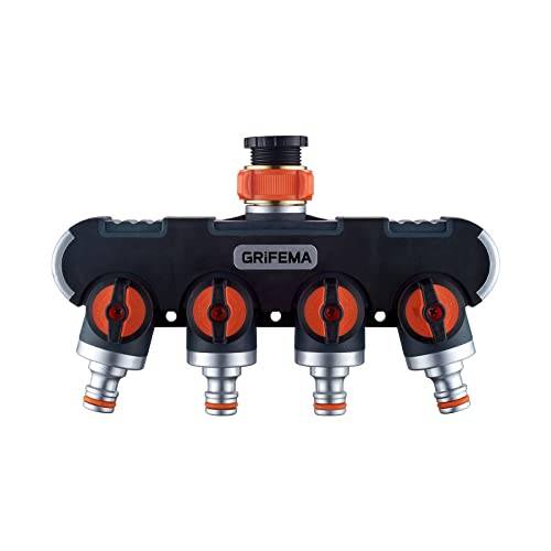 Bei der Installation einer Bewässerungsanlage mit mehreren Gartenschläuchen sind Verteiler mit individuell regelbaren Ventilen zu empfehlen. Diese ermöglichen nicht nur das Absperren einzelner Kanäle, sondern auch das Regulieren der durchfließenden Wassermenge. Ein Beispiel für ein Produkt mit dieser Funktion ist der Gardena-4-Wege-Verteiler.