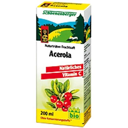 | Acerola-Saft | Bei einem Acerolasaft handelt es sich oft um einen Direktsaft, auch Acerola Muttersaft genannt. Das bedeutet, der Acerolasaft besteht aus 100% Acerola-Früchten. Oft wird bei der Herstellung von Acerolasaft auf jegliche Zusätze verzichtet. Acerolasaft gilt darum als sehr bekömmliche Alternative zu Acerola-Nahrungsergänzungsmitteln in fester Darreichungsform. Acerolasaft muss immer im Kühlschrank gelagert werden. | |