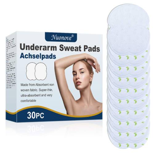Die meist weißen Achselpads bestehen aus feuchtigkeitsabsorbierendem und atmungsaktivem Vliesstoff. Des Weiteren haben die Achselpads häufig mehrere Schichten, welche Trockenheit durch einen saugfähigen Kern gewährleisten.