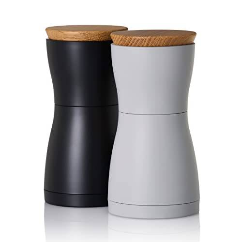 Die Adhoc-Pfeffermühle ist in verschiedenen matten Metallic-Farben erhältlich – etwa in Edelstahl, Blau oder Hellgrau, womit sie sich unseres Wissens in alle Küchenstile integrieren lässt.