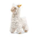 Mit seinen Knopfaugen wirkt das Alpaka-Kuscheltier ausdrucksstark, was nicht zuletzt durch den Farbkontrast auffällt.