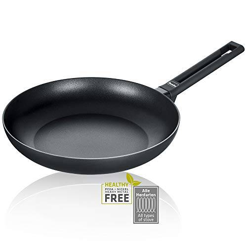 Pfannen mit dem Durchmesser 28 cm sind sehr beliebt. Sie sind geeignet für Kochplatten mit 22 cm Durchmesser. Um Energieverlust und Beschädigungen an der Pfanne zu vermeiden, sollte der Pfannenboden genau auf die Platte passen. Praktisch ist auch eine Servierpfanne mit 28 cm Durchmesser, die später mit dem Essen auf den Tisch gestellt werden kann.