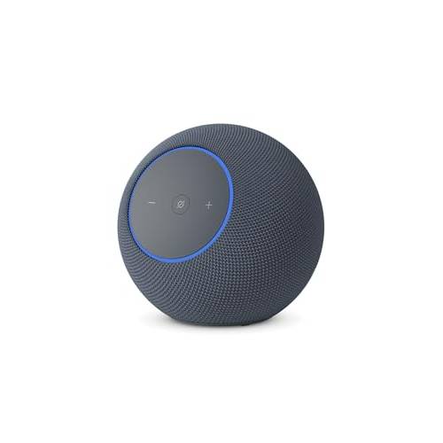 Auf diesem Bild sehen wir Amazon-Echo (4. Gen.) in der Farbe Blaugrau, er ist aber auch in Anthrazit und Weiß erhältlich sowie als Bundle mit einem Batteriesockel oder einer Lampe.