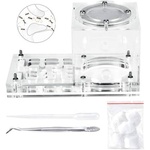 » Mehr InformationenMöchten Sie die Handhabung der Ameisenfarm erleichtern, bietet sich Zubehör an. So liegt vielen Ameisenfarm-Komplettsets beispielsweise ein Wasserspender bei. Auf diese Weise wird das Formicarium im ausreichenden Maße mit Feuchtigkeit versorgt.