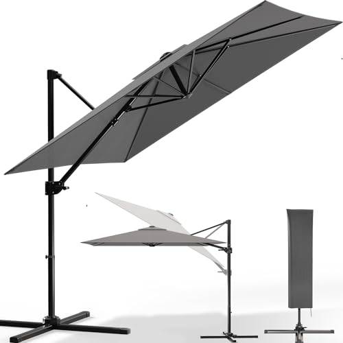 Ampelschirme sind nicht umsonst sowas wie die Shootingstars unter den Sonnenschutzlösungen. Dennoch gibt es einige Kriterien, denen Sie besondere Aufmerksamkeit widmen sollten, wenn Sie einen Ampelschirm kaufen möchten. Es kommt nämlich nicht nur auf die Größe an. Die vorderen Plätze unserer Vergleichs-Tabelle verfügen neben einer umfangreichen Dreh- und Schwenkbarkeit auch über eine hohe UV-Beständigkeit und sind wasserdicht. Ampelschirme mit integrierten LEDs sorgen hingegen für ein ganz besonderes Ambiente, sind jedoch nur selten in Tests von rechteckigen Ampelschirmen im Internet anzutreffen.