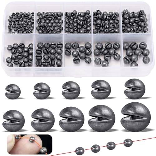 Häufig werden dafür kleine Kugeln aus Bleischrot verwendet, die über einen Spalt verfügen, in den die Angelschnur flexibel eingeklemmt werden kann. Das geschieht durch Zusammendrücken der Kugeln, die je nach Wunsch über die Schnur verteilt werden können.