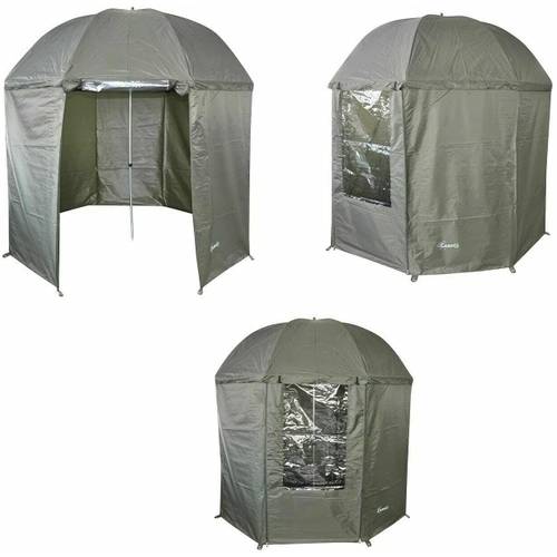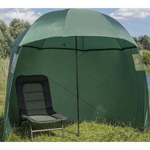Wenn die Seitenwand komplett um den Schirm führt und sie diese komplett schließen können, wird Ihr Brolly zum Schirmzelt, vergleichbar mit einem Karpfen-Zelt.