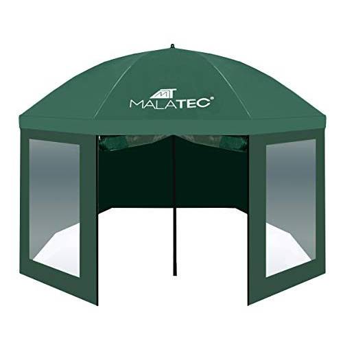 Bei schrägem Regeneinfall oder leichtem Wind bietet diese Angelschirm-Art sehr guten Schutz. Standortwechsel sind nach wie vor möglich, da auch mit diesem Schirmzelt mit Fliegenschutz der Auf- und Abbau recht einfach zu bewerkstelligen ist.
