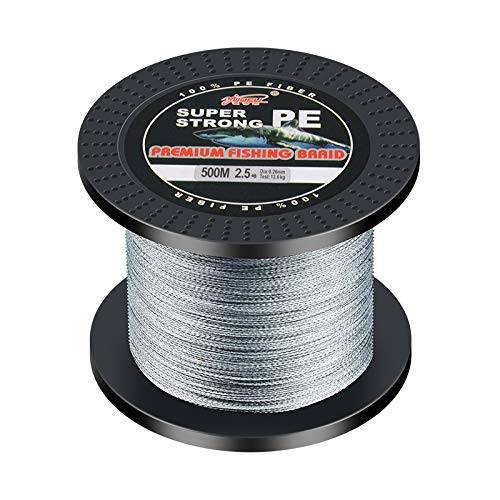 Während also eine monofile Angelschnur mit einem Durchmesser von etwa 0,30 mm nur eine ungefähre Tragkraft von 8 Kilo erreicht, kann die Tragkraft bei einer Angelschnur, die geflochten ist und einen Durchmesser von etwa 0,32 mm hat, bereits bei 18 Kilo liegen.