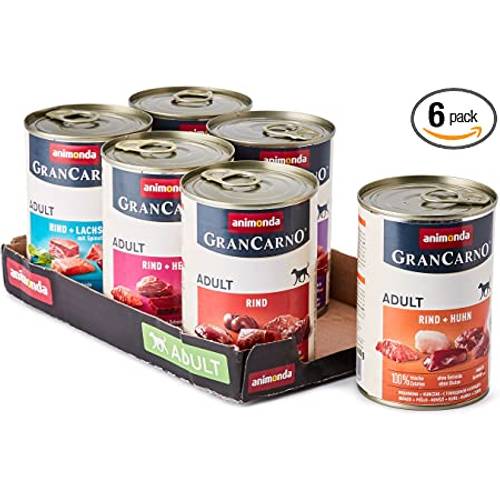 Das Animonda Gran Carno adult Hundefutter ist ein Nassfutter für erwachsene Hunde aller Rassen. Es ist getreidefrei und hat einen hohen Fleischanteil von 68 %, was wir gut finden.