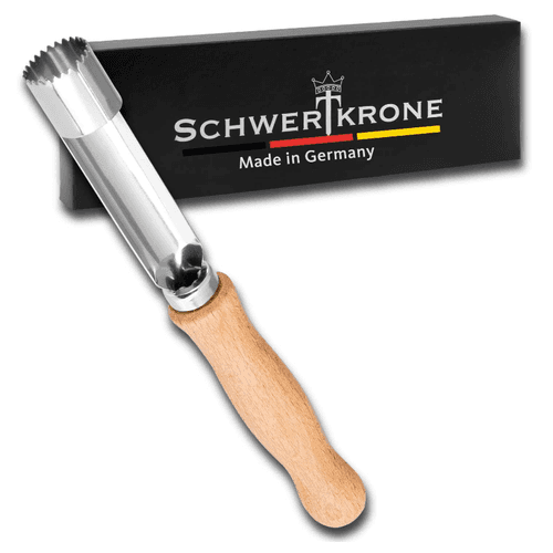 - Hierbei sollten Sie insbesondere auf einen gezackten Stechring des Apfelausstechers achten, da dieser das Entkernen besonders einfach macht.