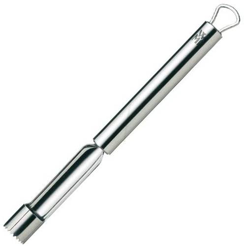 Wie gängige Tests von Apfelausstechern im Internet berichten, wurde der WMF-Apfelausstecher der Black-Line-Serie mit einem Kunststoff-Griff unlängst durch ein Modell mit einem Edelstahl-Griff ausgetauscht. Hierbei passt das schlichte Edelstahl-Modell zu diversen Küchendesigns.
