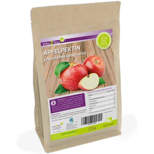 Apfelpektin ist ein pflanzliches Geliermittel. Pektine kommen in allen festen Bestandteilen von Pflanzen vor. Demnach sind Pflanzen mit harten Bestandteilen und Früchten pektinreicher als weiche Früchte. Bei Äpfeln kommt das Pektin besonders in der Schale und den Kernen vor.