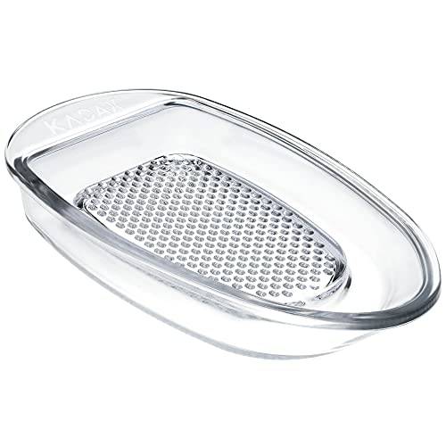 Die klassische Variante ist eine Glas-Apfelreibe. Glas hat den Vorteil, dass es keine unangenehmen Geschmäcker abgibt und somit nicht den Geschmack der geriebenen Äpfel verändert. Jedoch ist es auch sehr zerbrechlich, sodass die Glasreibe für Obst nach dem Herunterfallen sehr leicht zerbrechen kann.