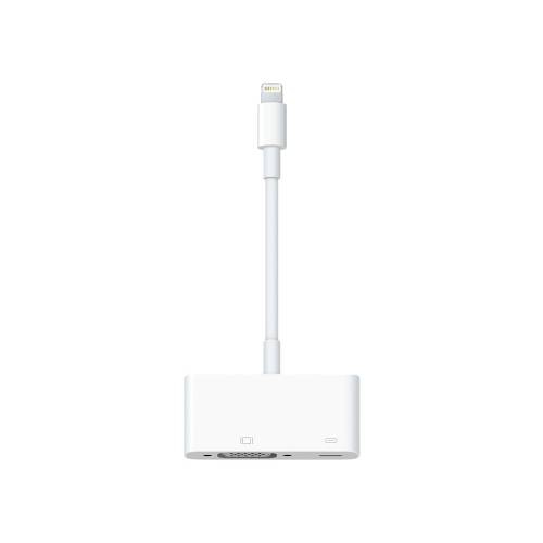Lightning auf VGA |  | Das analoge Pendant zum HDMI-Adapter: Jedoch können an der VGA-Schnittstelle nur Bildsignale ausgegeben werden. Diese werden im Adapter in die analogen Signale für VGA gewandelt. So können (insbesondere ältere) Bildschirme und Beamer per Apple-Lightning-Adapter vom iOS-Gerät mit Bildern versorgt werden. |