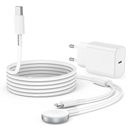Der große Vorteil eines 2-in-1-Ladekabels ist, dass es ein iWatch-Ladekabel und ein Lightning-Kabel vereint. Damit können Sie Ihre Apple Watch an dem magnetischen Ladedock sowie ein iPhone, iPad oder AirPods gleichzeitig aufladen.