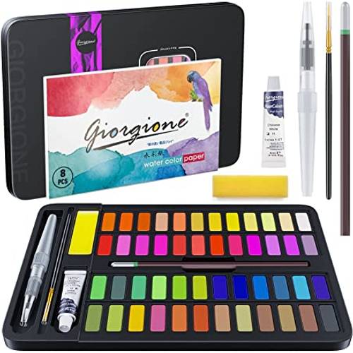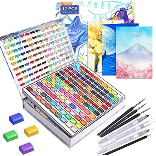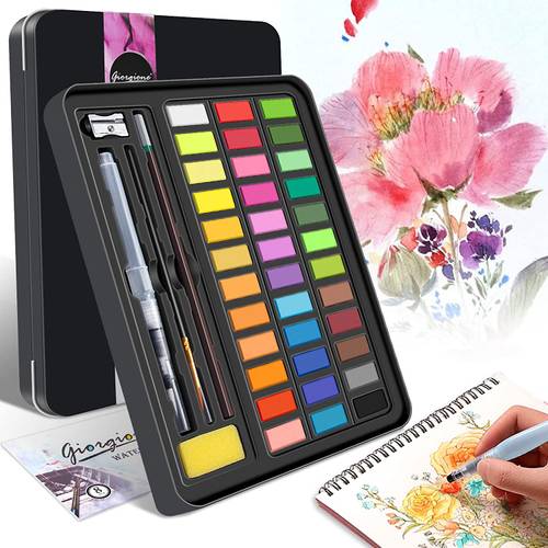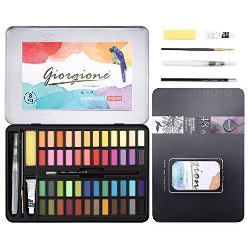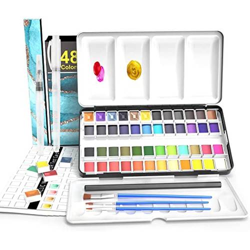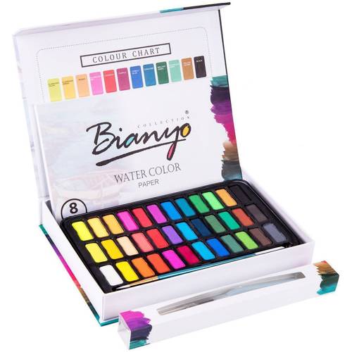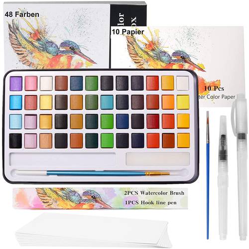 Um die Näpfe beim Transport oder Malen zusammenhalten zu können, kommen sie häufig in Sets in Form eines Aquarellkastens, in denen sie eingefasst sind. Möchten Sie diese besonders gut schonen, gibt es auch Aquarellfarben in Metallkästen.