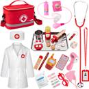 | Kleiner Arztkoffer (mit maximal 12 Zubehörteilen oder weniger) | + übersichtliches Kinder-Holz-Doktor-Spielset + einfacher Auf- und Abbau + sinnvoller Inhalt + auch für jüngere Kinder geeignet - Spiel könnte aufgrund des begrenzten Spielzeugs mit der Zeit eintönig werden |