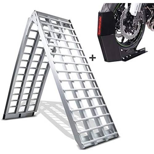 Dasselbe gilt für die Breite der Rampe: Sie muss von der Breite her unbedingt zu den Reifen Ihrer Maschine passen. Wenn die Rampe zu schmal ist, kann das Bike von der Motorrad-Auffahrrampe stürzen und Sie erheblich verletzen – Sie riskieren außerdem große Schäden an Ihrem Bike.