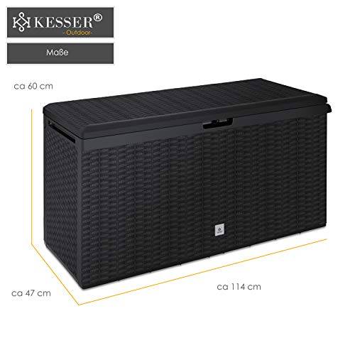 Selbstverständlich können Sie die Garten-Box als Truhe für anderweitige Utensilien verwenden. Die Auflagenbox aus Kunststoff ist wasserdicht, sodass auch Spielzeug, Tischdecken und andere Gartenutensilien in der Garten-Box für Kissen Platz finden können. Wird die Auflagen-/Kissen-Box von innen doch einmal schmutzig, kann sie schnell ausgewaschen werden. Die wasserdichte Kunstsstoff-Auflagenbox lässt sich von innen und außen einfach mit etwas Seifenwasser reinigen.