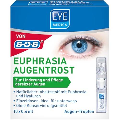 Wenn Sie regelmäßig starke Augenprobleme wie tränende Augen haben, die schnell zu einer Bindehautentzündung heranwachsen, empfehlen wir Ihnen zu Augentropfen mit einem anderen Inhaltsstoff zu greifen: Augentrost, oder auch Euphrasia genannt. Wir empfehlen Ihnen, derartige Tropfen nicht täglich anzuwenden, wenn Sie nur leichte Beschwerden haben, sondern, wenn Sie schnell eine Bindehautentzündung bekommen. Bei Bindehautentzündung helfen Augentropfen mit Euphrasia jedoch auch, wenn diese erst leicht ausgeprägt ist. Sollte diese weiter fortgeschritten sein, sollten Sie zu Augentropfen gegen Bindehautentzündung greifen, die Ihnen vom Augenarzt verordnet werden. Diese sind jedoch rezeptpflichtig