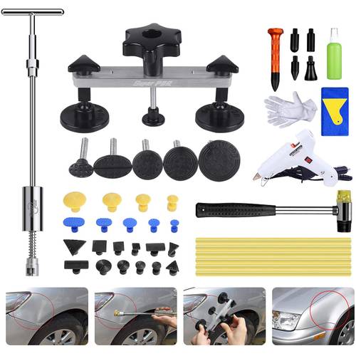 Die meisten Reparatur-Ausbeulwerkzeuge fürs Auto, mit denen Sie Dellen entfernen können, eignen sich für dünne bis mitteldicke Bleche. Dellenwerkzeug dieser Art ist für die meisten Fahrzeughersteller geeignet.