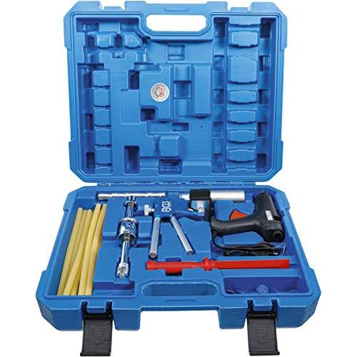 Ausbeulwerkzeuge mit Klebetechnik werden oft mit Spachtel und Heißklebepistole ausgeliefert. Ersterer erleichtert die Entfernung des Klebstoffs auf der bearbeiteten Fläche. Die Heißklebepistole ermöglicht ein punktgenaues Auftragen des Klebstoffs. Verunreinigungen des Blechs, Ihrer Hände oder der Kleidung werden so vermieden.