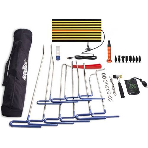 Kosmetische Behandlungen dieser Art schlagen in der Kfz-Werkstatt mit bis zu 500 Euro zu Buche. Mit hochwertigem Werkzeug zur Dellenentfernung nehmen Sie die Reparatur selbst in die Hand und sparen sich das Geld.