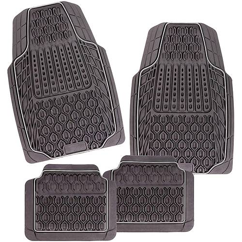Im Grunde haben Sie zwei Möglichkeiten: Entweder Sie legen sich im Sommer Auto-Fußmatten aus Velour ins Fahrzeug und „ertragen“ den Anblick der Gummimatten so nur in Schlechtwetterzeiten. Oder Sie wählen aus unserer Vergleichstabelle die Modelle aus, die zwar aus Gummi sind, optisch aber den Metallic-Look haben. So vereinen Sie Funktionalität und Optik zumindest ansatzweise.