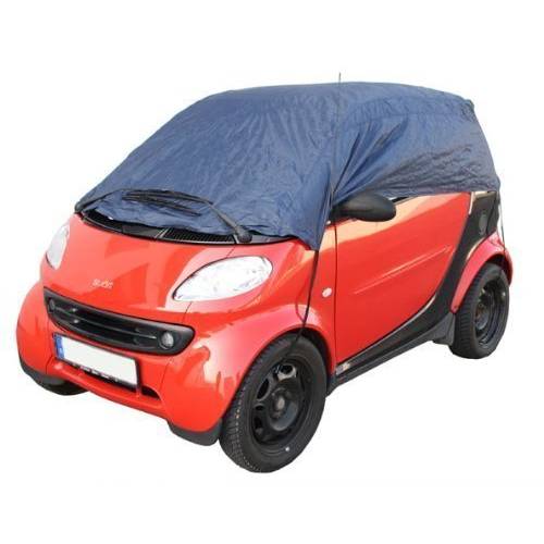 Der Vorteil bei der Halbgarage: Sie kann schneller und einfacher befestigt werden. Auch ist sie durch die geringere Materialmenge kompakter. Gerade wenn Sie Ihr Auto regelmäßig für kurze Zeiträume, z. B. über Nacht, abdecken müssen, ist deshalb meist eine Auto-Halbgarage nicht nur die günstigere, sondern auch zeitsparende Alternative. Gegen Hitze und Kälte schützt die Halbgarage, weil sie die wichtigsten Teile abdeckt, fast ebenso vollständig wie die Vollgarage. Für freie Scheiben und einen beschatteten Fahrgastraum geht es oft vorrangig um eine Frontscheibenabdeckung (Auto-Scheibenabdeckung).