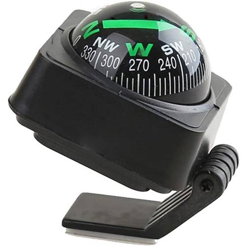 Ein Fahrzeugkompass wird am Armaturenbrett des Fahrzeugs einfach mithilfe eines Klebestreifens oder eines Saugnapfes angebracht. Die Kompasse fürs Auto in unserem Auto-Kompass-Vergleich sind meist sogenannte Kugelkompasse. Diese Bezeichnung ist darauf zurückzuführen, dass die Kompassrose sich bei einem solchen Kompass in einer Glaskugel befindet. Die Glaskugel ist frei drehend aufgehängt. So funktioniert ein Kugelkompass wie zum Beispiel der Silva Autokompass oder auch der Filfeel Navigationskompass unabhängig von der Lage des Fahrzeugs. In der Glaskugel befindet sich eine sogenannte Kompassflüssigkeit, in welcher wiederum die Kompassrose schwimmt. Gewichte an der Unterseite der Kompassrose bewirken, dass diese immer horizontal ausgerichtet bleibt. Der Magnet ist fest mit der Kompassrose verbunden, so dass diese sich mitdreht. Die Fahrtrichtung kann mithilfe eines Markierungsstriches auf dem Glas oder dem Kompassgehäuse abgelesen werden.