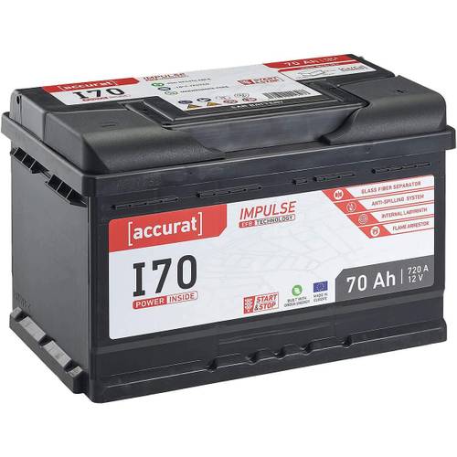 Beispiele für 70-Ah-Autobatterien, die Start-Stop-geeignet sind, sind die Varta-Silver-Dynamic-AGM mit 70 Ah, die EXIDE-EK700-L3-AGM oder die Impuls-EFB-Autobatterie mit 70 Ah von Accurat.