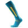 Gepolsterte Skisocken beugen Blasen vor und dämpfen Sprünge. Als Ski-Kompressionsstrümpfe können sie sogar Müdigkeitserscheinungen in den Beinen verhindern.