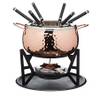 Praktisch sind Fondue-Sets aus Gusseisen mit Spritzschutzdeckel, die meist Einkerbungen für die Fonduegabeln haben. Somit können die Gabeln gut geordnet aufgestellt werden.