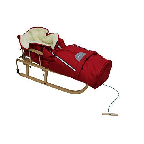 Die einfachste Form ist der klassische Holzschlitten, der mit einem speziellen Babyaufsatz ausgestattet ist. Dieser besteht meist aus einer hohen, stabilen Rückenlehne und seitlichen Begrenzungen. Ein solches Modell ist vor allem für Babyschlitten ab 6 Monate geeignet und überzeugt mit nostalgischem Charme und robuster Bauweise.