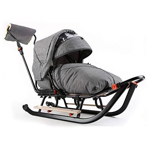 Eine weitere Variante ist der Babyschlitten mit Metallgestell und Schubstange. Diese Ausführung eignet sich besonders gut für Eltern, die ihr Kind beim Gehen lieber schieben als ziehen möchten. Durch die Schubstange lässt sich der Babyschlitten zum Schieben ähnlich wie ein Kinderwagen führen. Modelle dieser Art sind besonders beliebt bei Familien, die viel unterwegs sind oder längere Strecken zurücklegen.