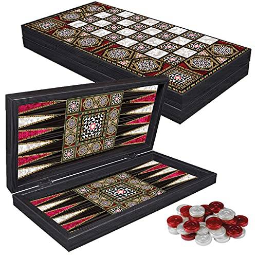 Platz 4 | Yellow Mountain Imports Backgammon-Spiel-Set mit Holzeinlagen | ca. 69 € | keine Herstellerangabe | 44 x 25 cm | ![]() ![]() | |
