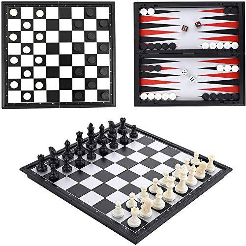 Hier sehen wir ein magnetischens Backgammon-Spiels z. B. zum Spielen am Strand. Auch bei wechselnden Lichtverhältnissen und unebenem Untergrund bleiben die kontrastreichen Steine gut sichtbar und an Ort und Stelle.