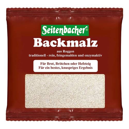 Der Packungsinhalt beträgt bei diesem Seitenbacher-Backmalz 250 g, was für ca. 4 bis 8 kg Mehl im Teig ausreicht.