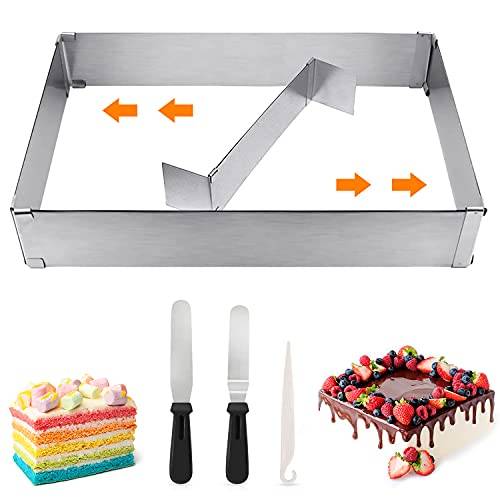 Es ist keine Grundeigenschaft eines eckigen Backrahmens verstellbar zu sein – allerdings ist es ein sehr praktisches Detail, das eine Vielzahl an Backvarianten ermöglicht. Diverse Tests zu eckigen Backrahmen im Internet zeigen: Breite und Länge lassen sich häufig zwischen 17 und 52 Zentimetern in Höhe und Breite verstellen. So ist es auch möglich, rechteckige und quadratische Kuchen zu backen. Nicht verstellbar sind hingegen eckige Backrahmen, die häufig auch als Springform bezeichnet werden und nicht nur einen Rahmen, sondern auch einen Boden haben. Backen Sie häufig Motivtorten, empfehlen wir Ihnen einen eckigen Backrahmen, der variabel in der Größe ist.