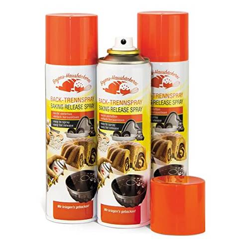 Bedenken Sie beim Einsatz von Trennfett, dass die meisten Backtrennsprays Alkohol enthalten und in einem Behälter sind, welcher unter Druck steht. Sprühen Sie also niemals auf offenes Feuer und achten Sie darauf, dass die Dose nicht heiß wird, da sie sonst explodieren könnte.