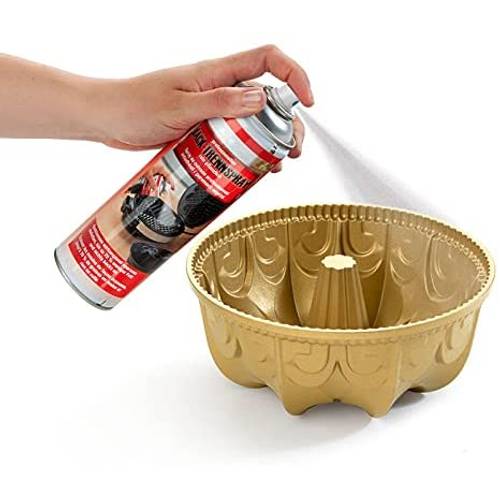 Gerade tiefe, stark strukturierte Backformen werden mit Produkten, wie diesem Dr.-Oetker-Backtrennspray leichter erreicht, als beispielsweise mit einem Stück Butter auf Butterpapier.