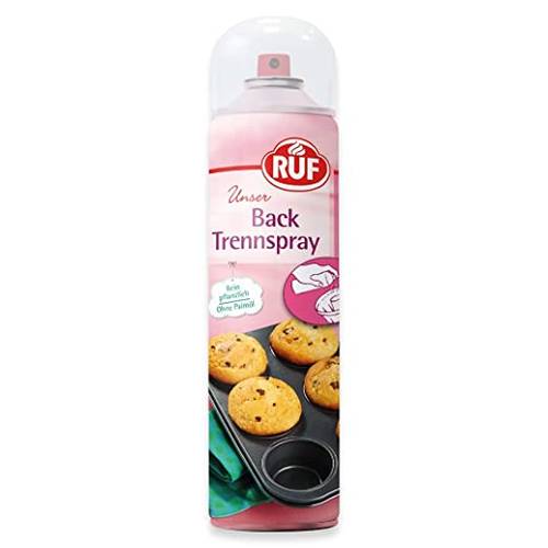 Hier erkennen wir ein Dr.-Oetker-Backtrennspray, das laut unserer Recherche aus Rapsöl, Traubenkernöl, und Sonnenblumenlecithine als Emulgator besteht.
