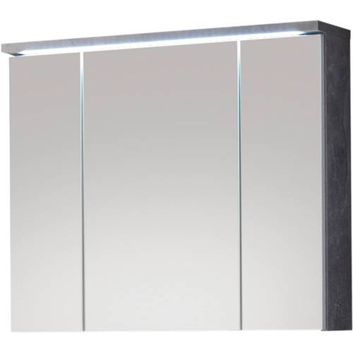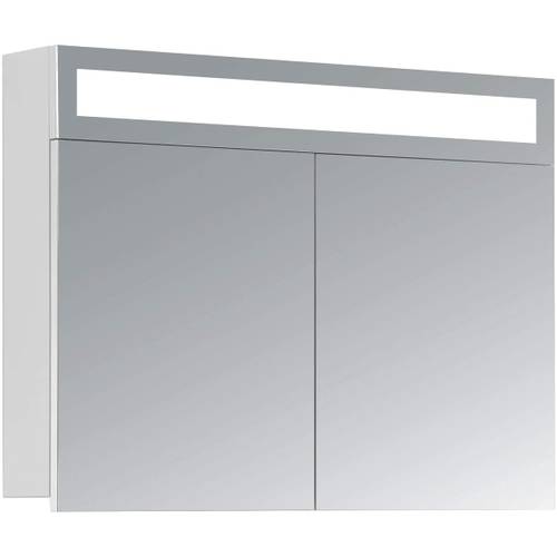 Auf diesem Bild sehen wir den Camargue-Stella-Bad-Spiegelschrank mit Beleuchtung, dessen LED-Beleuchtung in den Spiegel integriert ist.