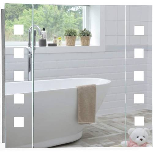 Ein so großer Bad-Spiegelschrank mit Beleuchtung bietet reichlich Platz für Utensilien und bei steuerbarer Lichtintensität auch jede Menge Komfort.