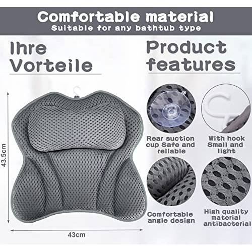 Badewannenkissen eignen sich auch als Badezimmer-Deko. Stimmen Sie Badewanneneinlage und Badewannenkissen mit anderen Badaccessoires wie Duschvorhang, Badewannenmatte farblich ab.